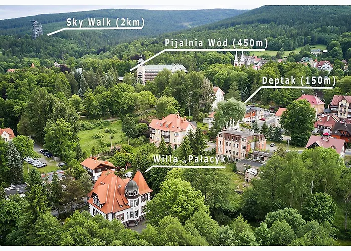 Die Lage des Hotels Willa Palacyk Świeradów-Zdrój, 6 Minuten Fußweg vom Kurmuseum entfernt, ist von Gästen sehr beliebt. Außerdem gibt es Parkplätze.